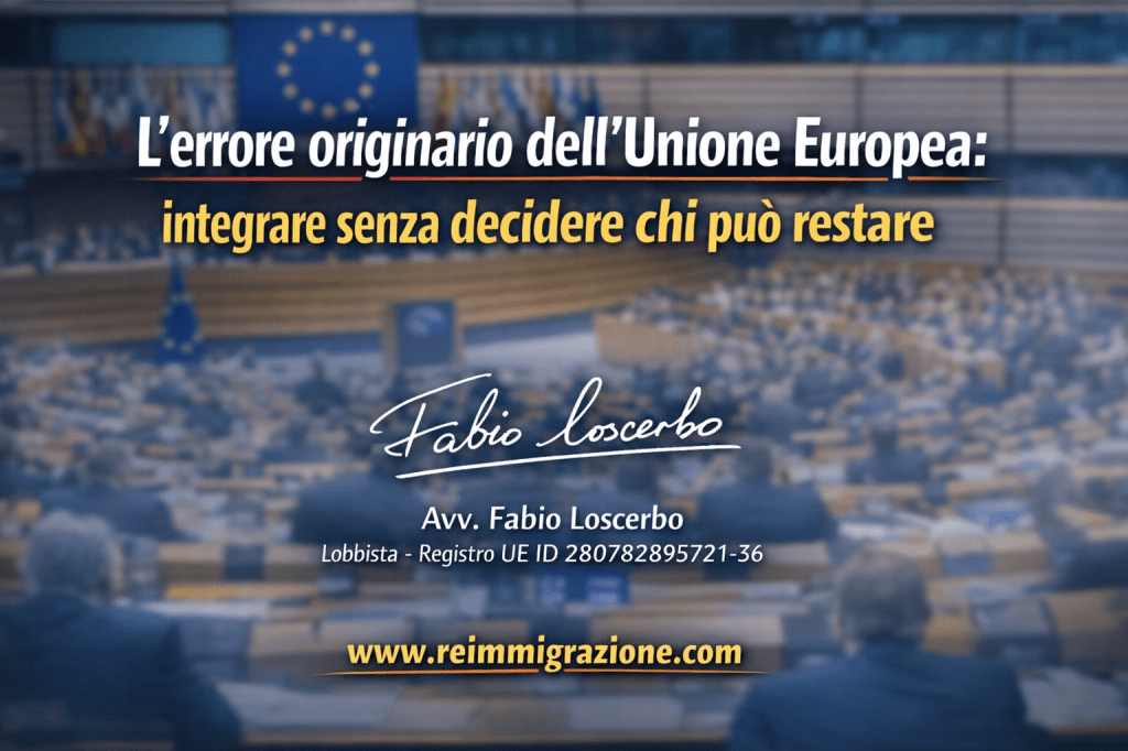 C’è un errore di fondo, mai corretto e anzi progressivamente aggravato, che segna tutta la gestione europea del fenomeno migratorio: l’Unione europea ha costruito un sistema di integrazione senza aver mai chiarito, in modo politico e giuridicamente vincolante, chi abbia titolo a restare sul territorio europeo.