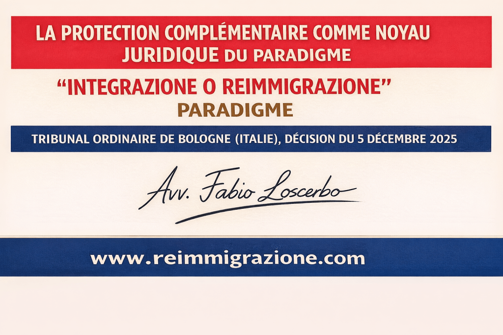 La décision rendue le 5 décembre 2025 par le Tribunale Ordinario di Bologna revêt une importance particulière, car elle explicite avec rigueur la fonction contemporaine de la protection complémentaire et son rôle central dans le paradigme que je définis comme « Integrazione o ReImmigrazione ».