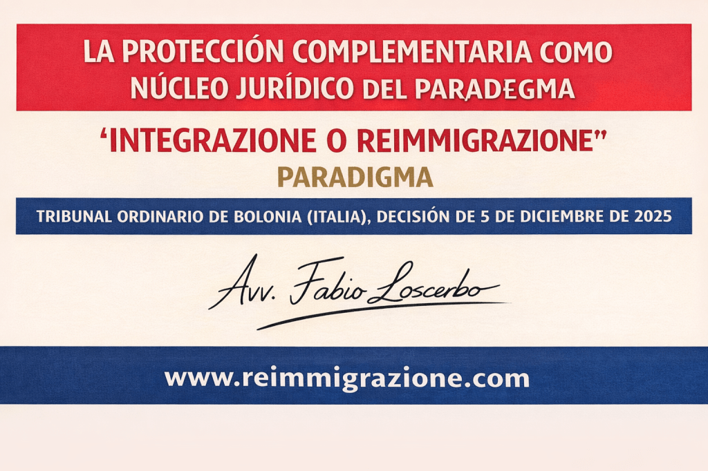 La decisión dictada el 5 de diciembre de 2025 por el Tribunale Ordinario di Bologna resulta especialmente relevante porque define con precisión la función contemporánea de la protección complementaria y su papel central dentro del paradigma que denomino «Integrazione o ReImmigrazione».