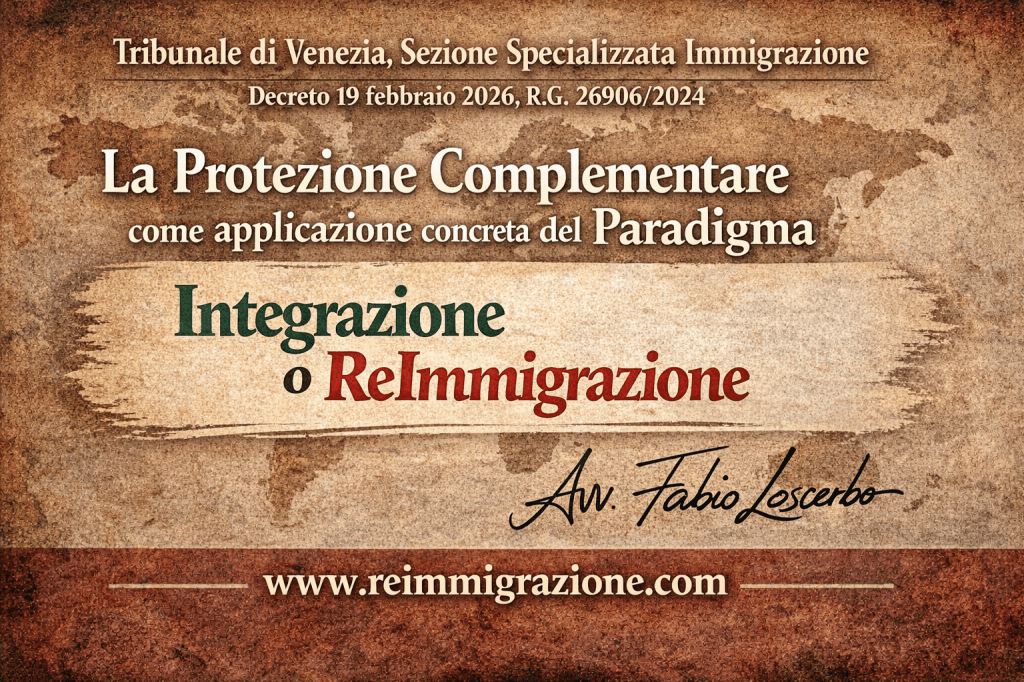 La protezione complementare, in questa chiave, non è una zona grigia del sistema migratorio. È il punto di convergenza tra diritto costituzionale, diritto convenzionale e politica pubblica responsabile. È la traduzione normativa del principio secondo cui l’integrazione genera diritti e consolida la permanenza; il mancato radicamento apre alla ReImmigrazione come esito coerente e ordinato.