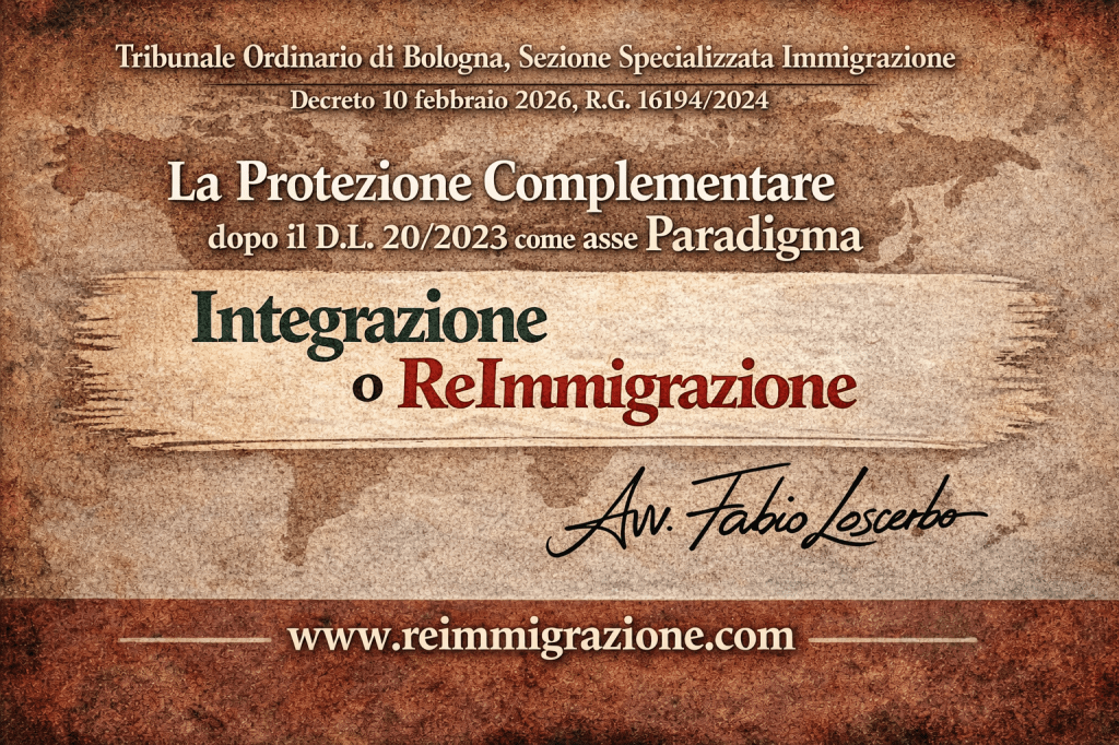 Tribunale Ordinario di Bologna, Sezione Specializzata Immigrazione, decreto 10 febbraio 2026, R.G. 16194/2024 – La protezione complementare dopo il D.L. 20/2023 come asse giuridico del paradigma “Integrazione o ReImmigrazione”