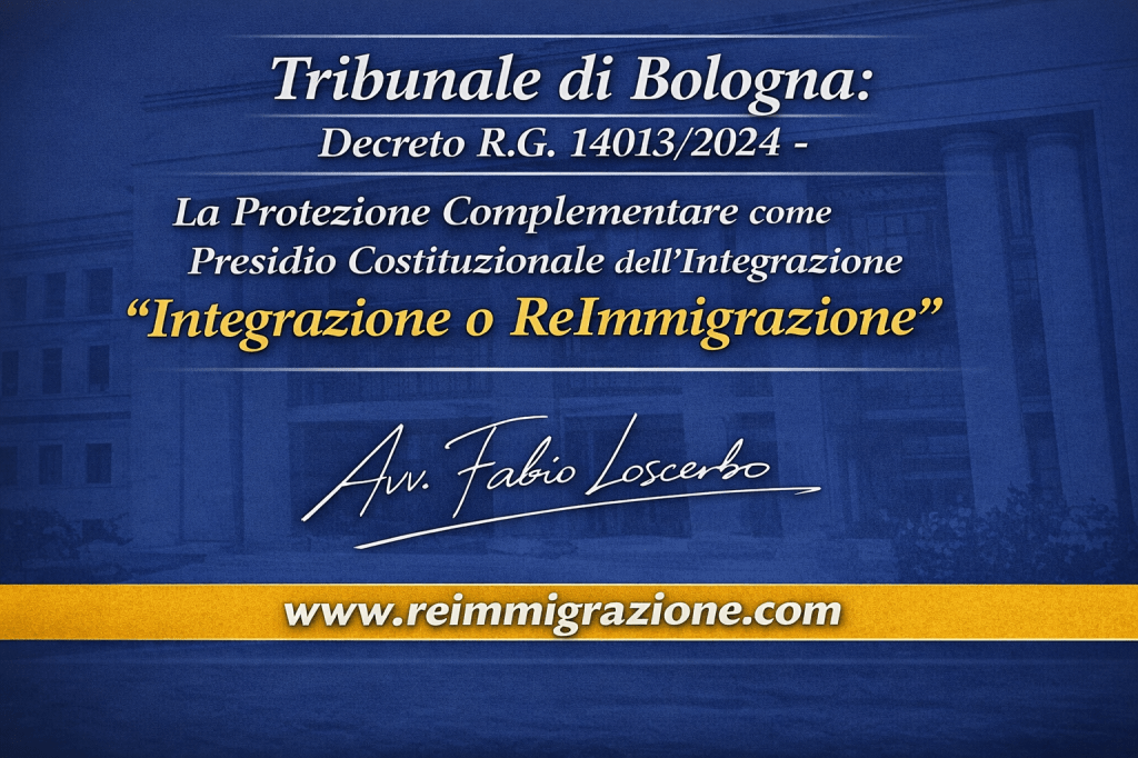 Tribunale Ordinario di Bologna, Sezione Specializzata Immigrazione – Decreto R.G. 14013/2024 (camera di consiglio 23 gennaio 2026): la protezione complementare come presidio costituzionale dell’integrazione nel paradigma “Integrazione o ReImmigrazione”