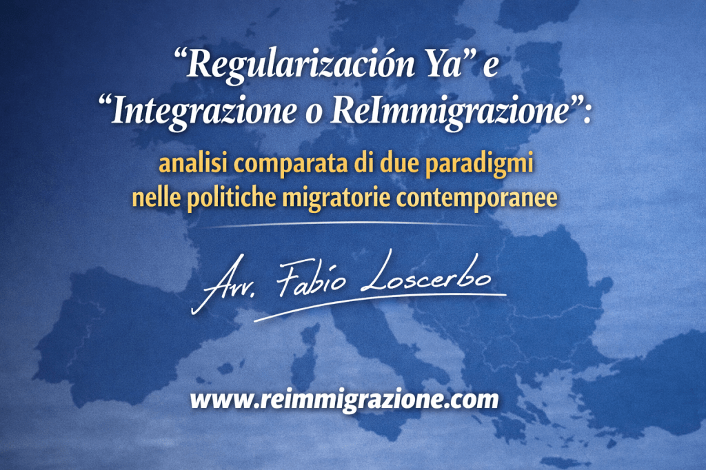 Il dibattito europeo sulle politiche migratorie si sviluppa oggi attorno a modelli teorici e operativi profondamente differenti. Da un lato emergono iniziative che propongono la regolarizzazione generalizzata dei migranti irregolari come strumento di inclusione sociale, come nel caso della piattaforma spagnola “Regularización Ya”. Dall’altro lato si sviluppano paradigmi che attribuiscono centralità ai processi di integrazione sociale, linguistica e lavorativa come criterio per la stabilizzazione del soggiorno. In questo contesto si colloca il paradigma “Integrazione o ReImmigrazione”, che propone un modello di gestione dell’immigrazione fondato sulla verifica dei percorsi di integrazione effettiva nello Stato ospitante. Il presente contributo propone un’analisi comparata di questi due paradigmi, evidenziandone i presupposti teorici, le implicazioni giuridiche e le possibili conseguenze nel contesto delle politiche migratorie europee.