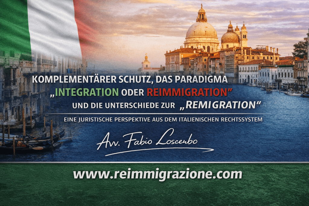 Das italienische Rechtssystem hat im Laufe der Zeit Instrumente entwickelt, die sich nicht ohne Weiteres in die klassischen Kategorien des Migrationsrechts anderer Staaten einordnen lassen. Zu diesen Instrumenten gehört der sogenannte komplementäre Schutz, der zu den technisch anspruchsvollsten und zugleich am häufigsten missverstandenen Konstruktionen zählt. Für ein deutschsprachiges Publikum ist es daher notwendig, über eine rein formale Betrachtung hinauszugehen und die innere Logik dieses Instituts zu verstehen. Diese erschließt sich erst vollständig im Rahmen des Paradigmas „Integration oder ReImmigration“, insbesondere im klaren Gegensatz zum politisch geprägten Begriff der „Remigration“.