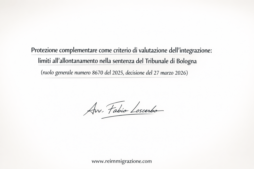- Protezione complementare come criterio di valutazione dell’integrazione: limiti all’allontanamento nella sentenza del Tribunale di Bologna (ruolo generale numero 8670 del 2025, decisione del 27 marzo 2026)