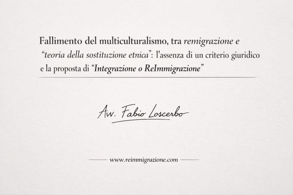 - Fallimento del multiculturalismo, tra remigrazione e “teoria della sostituzione etnica”: l’assenza di un criterio giuridico e la proposta di “Integrazione o ReImmigrazione”