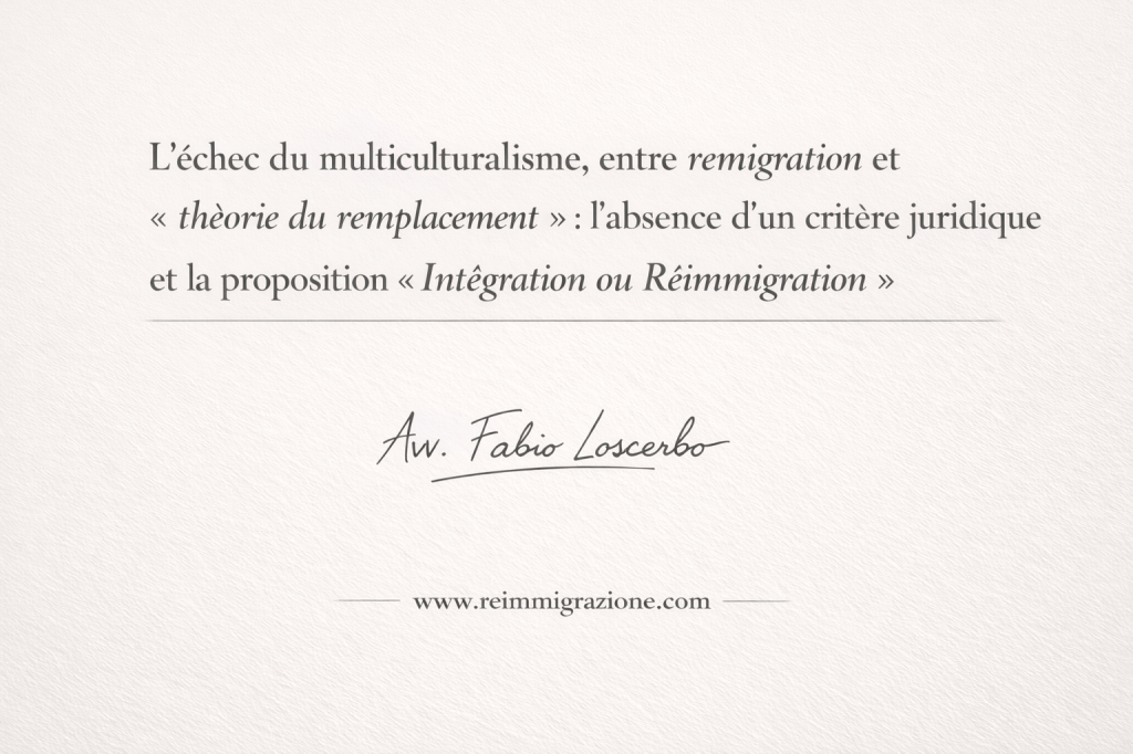 L’échec du multiculturalisme, entre remigration et « théorie du remplacement » : l’absence d’un critère juridique et la proposition « Intégration ou Réimmigration »