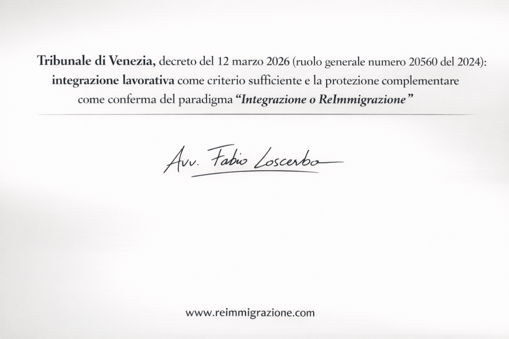 - Tribunale di Venezia, decreto del 12 marzo 2026 (ruolo generale numero 20560 del 2024): integrazione lavorativa come criterio sufficiente e la protezione complementare come conferma del paradigma “Integrazione o ReImmigrazione”
