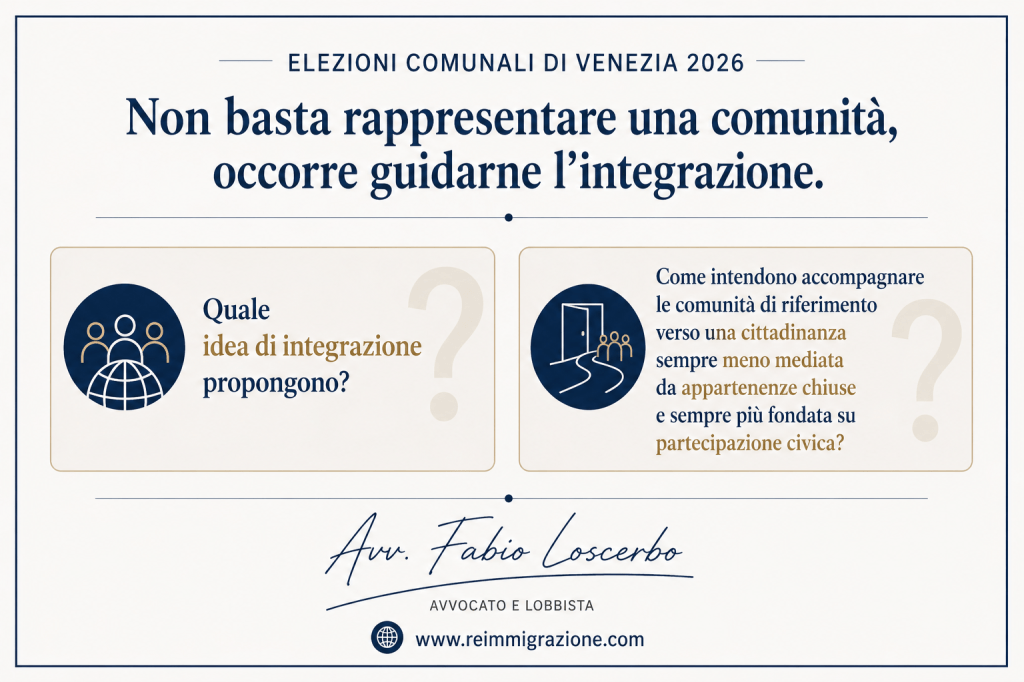 - Elezioni Comunali di Venezia 2026: non basta rappresentare una comunità, occorre guidarne l’integrazione