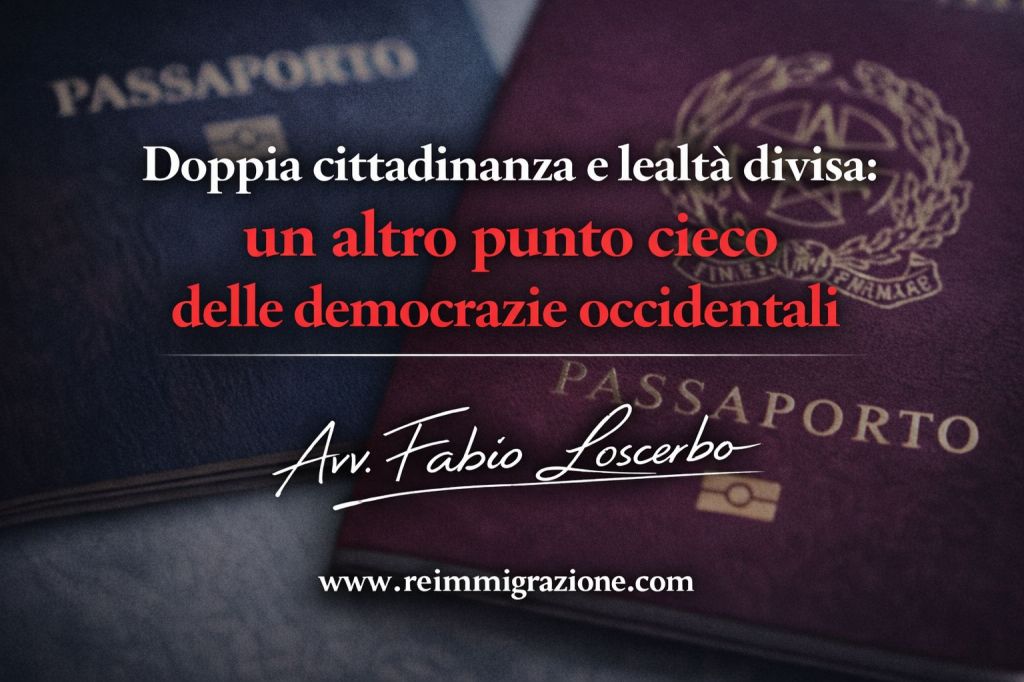 - Doppia cittadinanza e lealtà divisa: un altro punto cieco delle democrazie occidentaliNelle democrazie occidentali la doppia cittadinanza è stata progressivamente normalizzata, fino a diventare un istituto dato per scontato. Presentata come strumento di inclusione e modernizzazione, è stata raramente interrogata nei suoi effetti strutturali sul rapporto tra individuo e Stato. Eppure, se osservata senza filtri ideologici, la doppia cittadinanza solleva una questione centrale: a chi appartiene… Leggi tutto: Doppia cittadinanza e lealtà divisa: un altro punto cieco delle democrazie occidentali