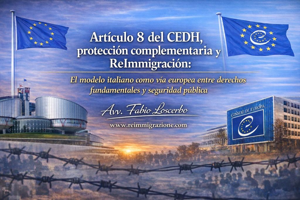 - Artículo 8 del CEDH, protección complementaria y ReImmigraciónEl modelo italiano como vía europea entre derechos fundamentales y seguridad públicaEn los últimos meses se ha abierto en Europa un debate relevante en torno a la aplicación del artículo 8 del Convenio Europeo de Derechos Humanos, que garantiza el respeto de la vida privada y familiar. Este debate ha sido impulsado por una iniciativa política promovida por Italia y Dinamarca, a la que se han… Leggi tutto: Artículo 8 del CEDH, protección complementaria y ReImmigraciónEl modelo italiano como vía europea entre derechos fundamentales y seguridad pública