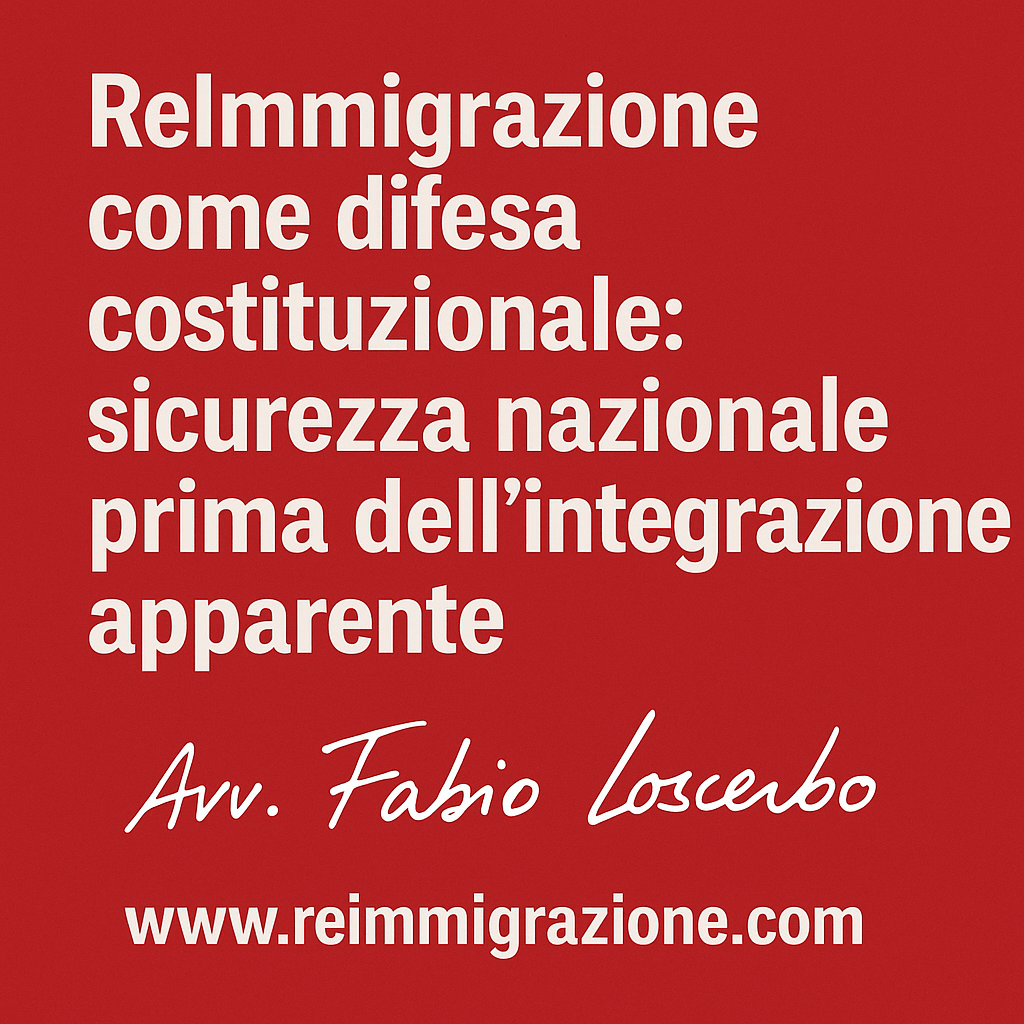 - Integrazione negata, ReImmigrazione necessaria: il TAR Lazio legittima l’espulsione per pericolosità socialeTAR Lazio, camera di consiglio 13 maggio 2025C’è un punto che il dibattito pubblico sull’immigrazione continua ostinatamente a eludere: l’integrazione non è un fatto automatico né irreversibile. È un processo, e come tutti i processi giuridicamente rilevanti presuppone condizioni, comportamenti coerenti e, soprattutto, la condivisione minima dei valori fondamentali dell’ordinamento che accoglie. Quando questo presupposto viene meno, lo Stato non solo può… Leggi tutto: Integrazione negata, ReImmigrazione necessaria: il TAR Lazio legittima l’espulsione per pericolosità socialeTAR Lazio, camera di consiglio 13 maggio 2025