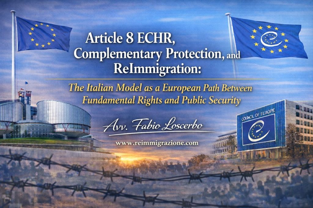 - Article 8 ECHR, Complementary Protection and ReImmigrationThe Italian Model as a European Path Between Fundamental Rights and Public SecurityIn recent months, a significant debate has emerged across Europe concerning the application of Article 8 of the European Convention on Human Rights, which guarantees respect for private and family life. This debate has been prompted by a political initiative promoted by Italy and Denmark, subsequently supported by a number of other European states. Before… Leggi tutto: Article 8 ECHR, Complementary Protection and ReImmigrationThe Italian Model as a European Path Between Fundamental Rights and Public Security